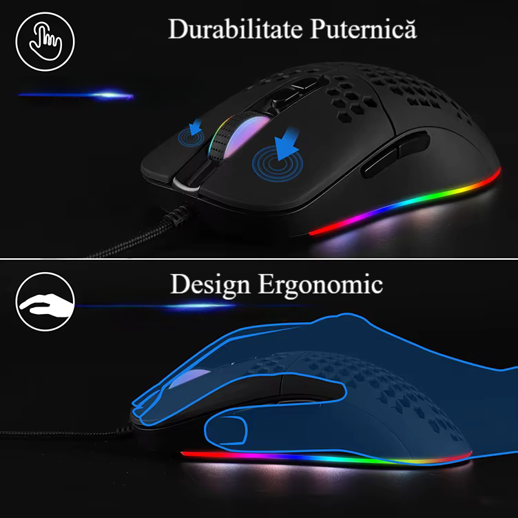 Bervolo® Genesis X Professional Gaming & Office Mouse, RGB, 7 Buttons, 7200 DPI, Ultra-lightweight, Type-C, Compatible with Windows/MacOS/Android, Ergonomic, Black