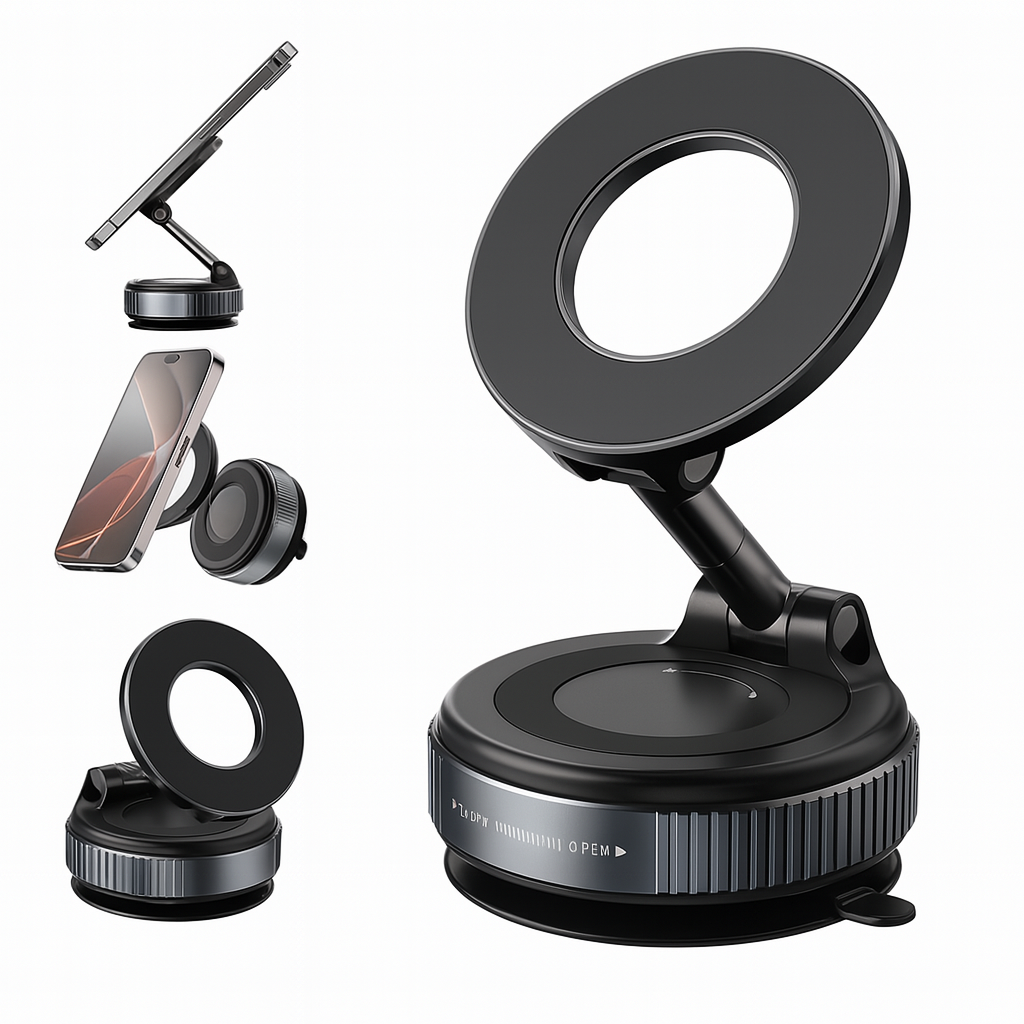 Works perfectly with iPhone 12/13/14/15/16 directly or any other phone via the included magnetic ring. You have total freedom to mount it wherever you want – car dashboard, desk, wall, countertop or glass.
