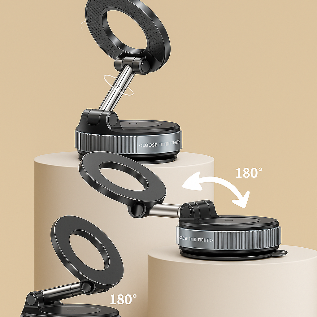 Bervolo® MagSafe Universal Phone Holder, Vacuum Ultra Fix, 360° Rotation, Double Nano-Gel + Vacuum Suction Cup, Mounts on Any Surface