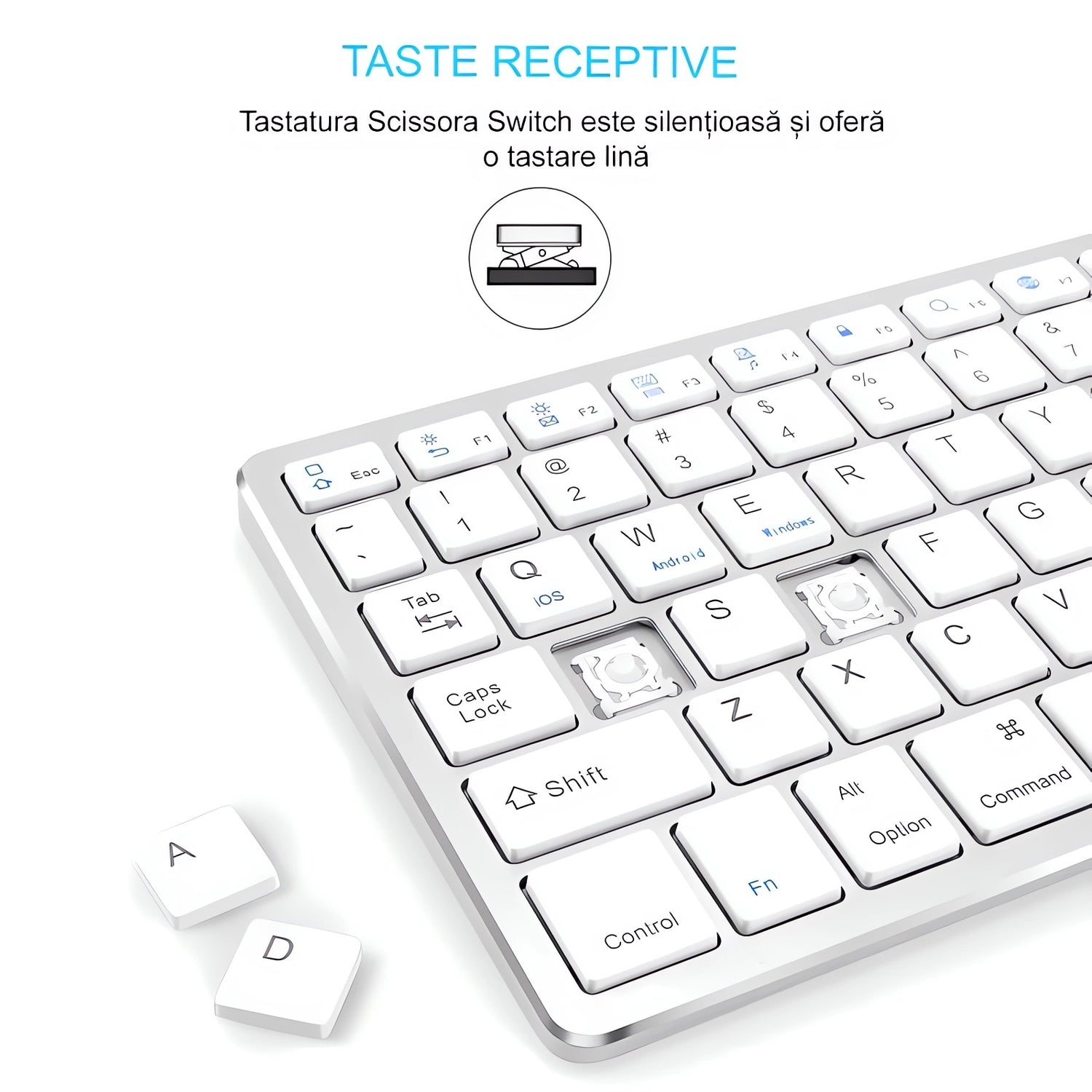 Bervolo® Rechargeable Bluetooth Keyboard – Scissor Switch, Multimedia Keys, Universal Compatibility, Windows/Mac/iOS/Android, Silver